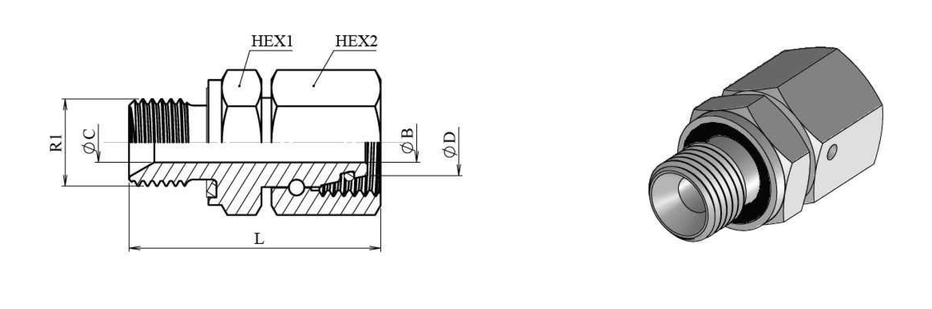 BSP наруж. - метрическая внутр. гайка, конус наружный 24°