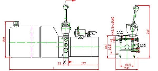 Модель | Напряжение электродвигателя | Мощность электродвигателя | Подача см3/об | Настройка предохранительного клапана | Объем бака |