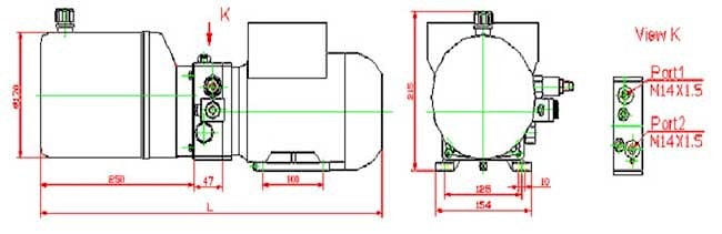 Модель | Напряжение электродвигателя | Мощность электродвигателя | Подача см3/об | Настройка предохранительного клапана | Объем бака | Напряжение управления |