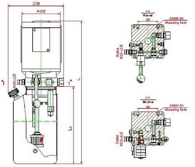 | Модель | Напряжение электродвигателя | Мощность электродвигателя | Подача см3/об | Настройка предохранительного клапана | Объем бака | Напряжение управления |