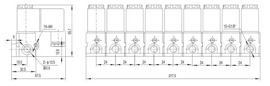 Трехлинейный пневмораспределитель для блочного монтажа R2-L электроуправление 1/8"