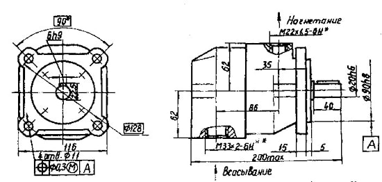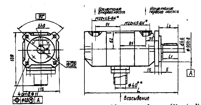 *В насосах на давление 6,3МПа изготовление 2-х отв. К1" по ГОСТ6111-52