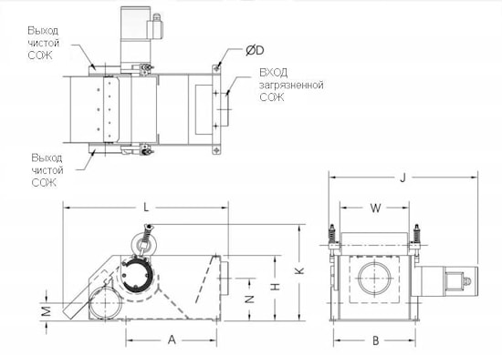 | Модель | Подача, л/мин | L | W | H | M | N | A | B | D | J | K | Вход | Выход | Двигатель |