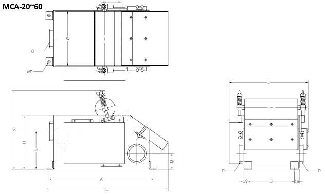 | MCA-1000 | 1000 | 580 | PT6" | PT6" | 380/220V 3φ200W /0,79A |