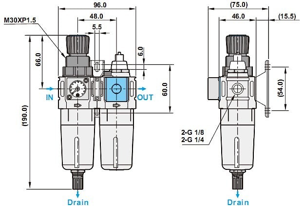 Блок подготовки воздуха миниатюрный 1/8, 1/4 серии FRL600C
