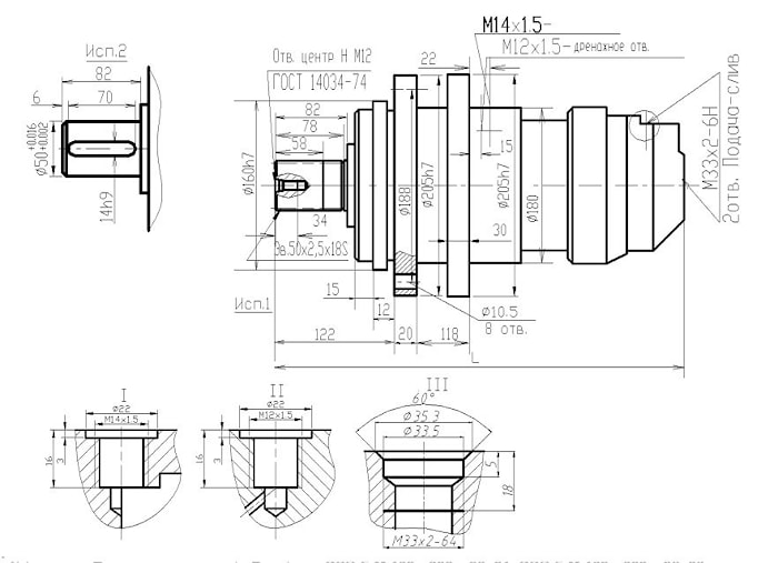 Гидромотор планетарно-роторный с тормозом и выходным валом ГПРФ-M 160…630 – 02- 01- исп.1 ГПРФ 160…630 – 02-02- исп.2