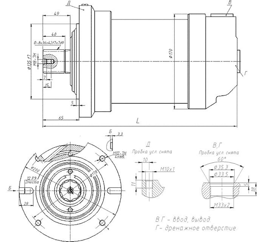 ОРозначение | V,cm3 | L, mm | Qhom, dm3/min-1 | Pnom, MPa | Pmax, MPa | Mnom, Hm | Mm ax, Hm | nnom, мин-1 | Масса, кг |
