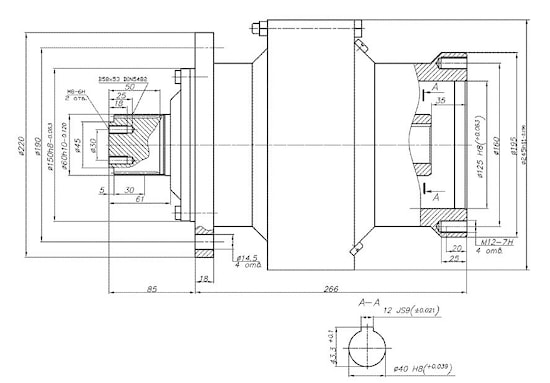 Радиальная нагрузка на выходной вал редуктора – 32 кН max, осевая нагрузка – не допускается.