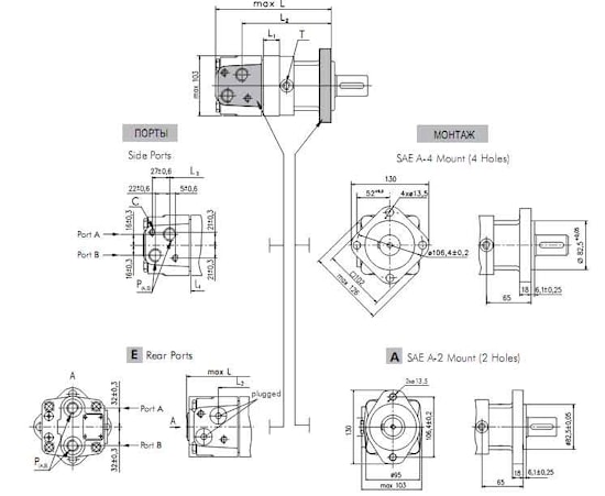 Благодаря дисковому клапану, компенсированному по давлению и роликовому геротору гидромоторы серии OS (МГП) имеют малые утечки и малые механические потери.
