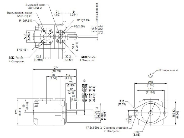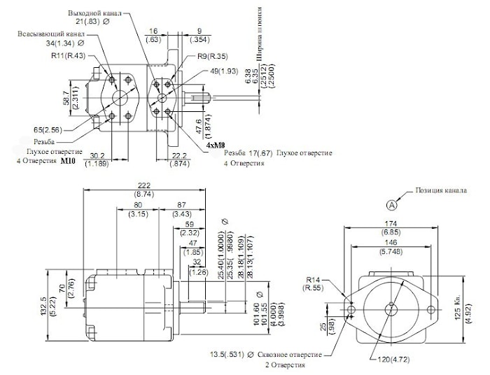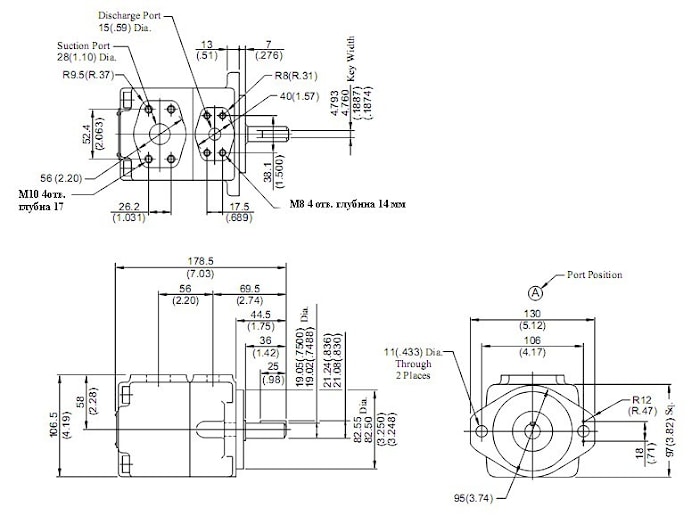 модель PV2R1 PV2R2 PV2R3 PV2R4 | Объем, см3 6, 8, 11, 14, 17, 19, 23, 26, 31 41, 47, 53, 59, 65 76, 82, 88, 94, 108, 116, 126 136, 153, 184, 200, 237 | Монтаж F- фланец L- лапы | Направление вращения R: по часовой L: против часовой | Нагнетание (вид со стороны вала) А: сверху (стандарт) В: снизу R: справа L: слева | Всасывание А: сверху (стандарт) В: снизу R: справа L: слева |