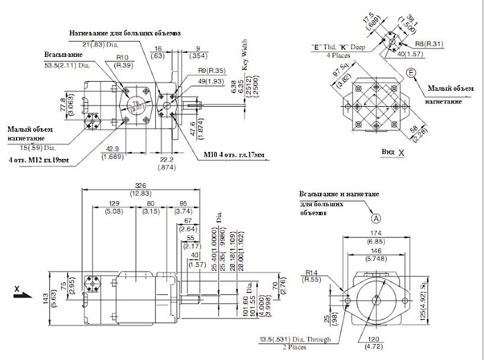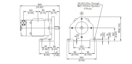 Сдвоенный насос PV2R12 монтаж на лапах габаритные и присоединительные размеры