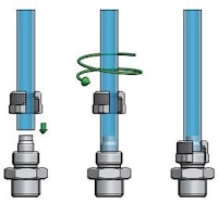 Рекомендуемая пневмотрубка | Полиамид PA11, PA12, PA6, полиэтилен PE, полиуретан PU (98 Shore A). |
