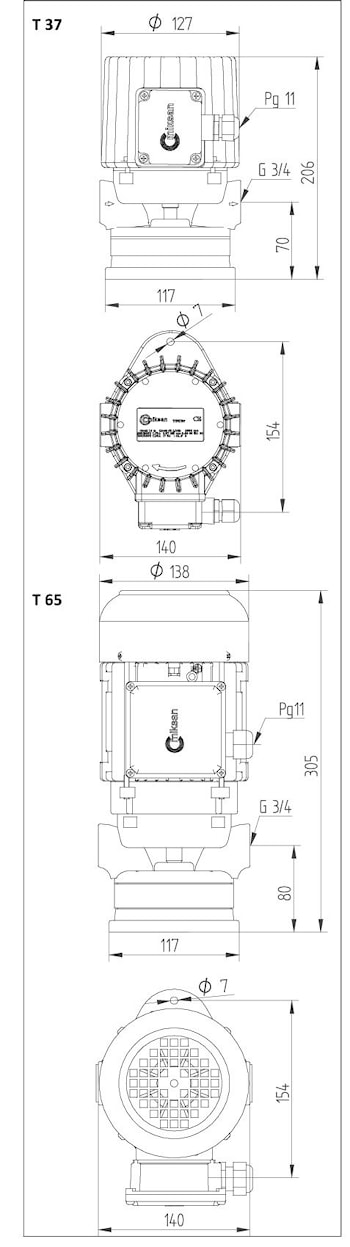 T 37 | 40 | 3/4" | 7.2 | 0.37 | 230/400 | 50 | 1.9/1.1 | 2820 |