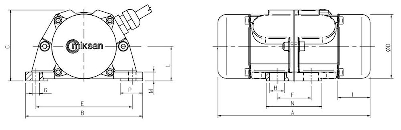 TYPE | A | B | C | | ØD | E | F | Gx4 | H | I | L | M | N | P | Cable Entry |