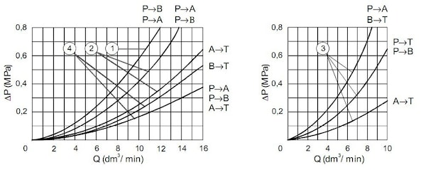 Зависимость перепада давления от расхода гидрораспределителей ВЕ43 (WE5)