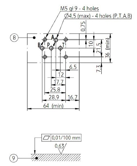 Стыковая поверхность выполнена по стандарту CETOP5.