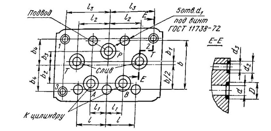 | Типоразмеры распределителей | l | l1 | l2 | l3 | Ь | b1 | b2 | b3 | b4 | D | d | d1 | d2 | d3 |