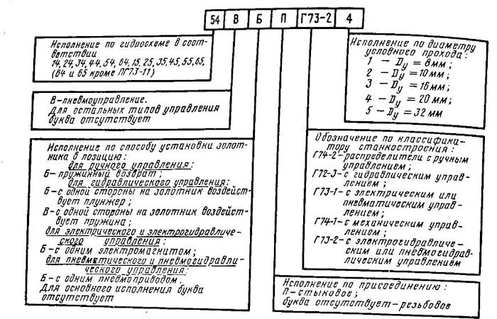 Схема расшифровки условных обозначений гидрораспределителей Г (ПГ)