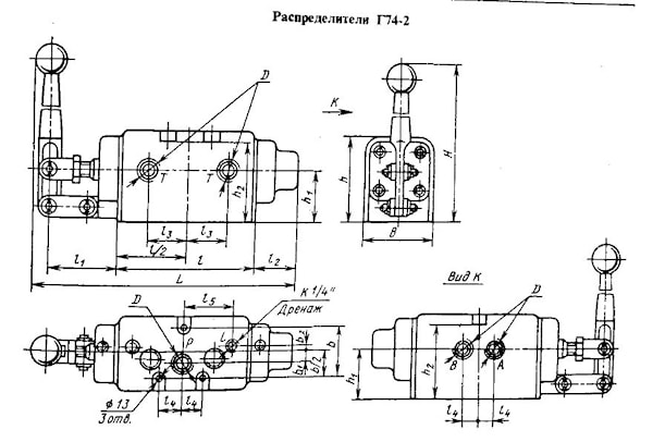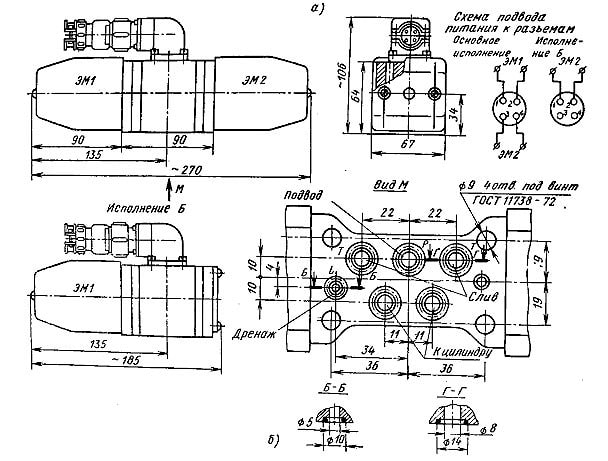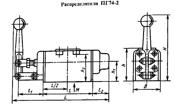 Габаритные и присоединительные размеры гидрораспределителей Г(ПГ)74-2