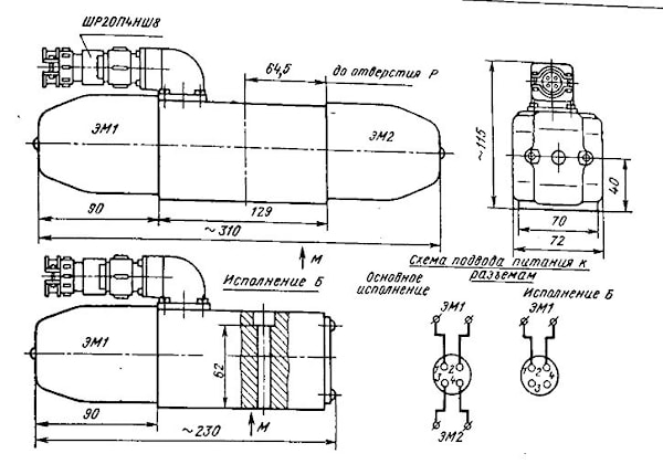 Габаритные и присоединительные размеры гидрорспределителей ПГ73-12