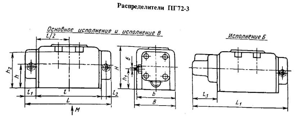 Габаритные и присоединительные размеры гидрораспределителей Г(ПГ)72-3