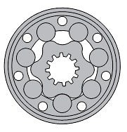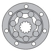 Моторы серий MR и MH - героллерные, во внешней шестерне вместо зубьев ролики. Этот тип моторов подходит для реверсивных нагрузок, высоких давлений, тяжелых условий эксплуатации.