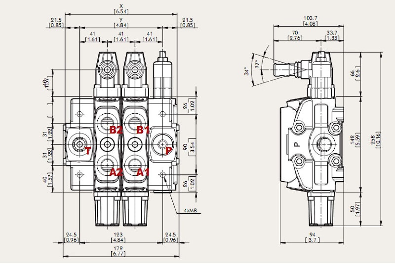 Порты А, В, P - G1/2"; Т - 3/4"