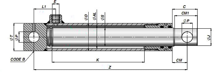 Код | K | Z | kg | E-BSP | L1 | ⌀P | CM | C | ⌀J | CM1 | ⌀T | Code B |