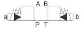 2. При перемещении золотника от магнита "b" происходит соединение каналов Р—>B, A—>T