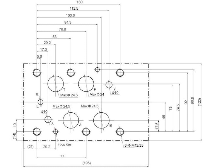 Размер монтажной поверхности для золотниковых распределителей стыкового монтажа Ду20 типа 4WEH16, 4WH16 по ГОСТ26890-86 , CETOP , ISO 4401 , DIN 24 340