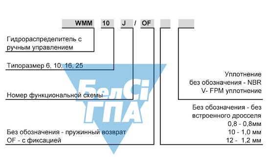 Структура условного обозначения гидрораспределителей WMM10, номера схем