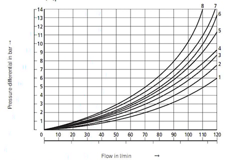 Расходные характеристики гидрораспределителей WMM10 (измерены при v = 41 мм2/с и t = 50 °C)