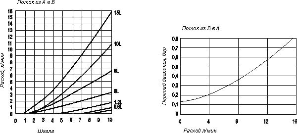 | Перепад давления, бар | 0,5 | 0,5 | 0,6 | 0,9 | 1,8 | 3,6 | 6,7 | 2 | 2,5 | 3,5 | 6 | 2,8 | 4,3 | 7,3 |
