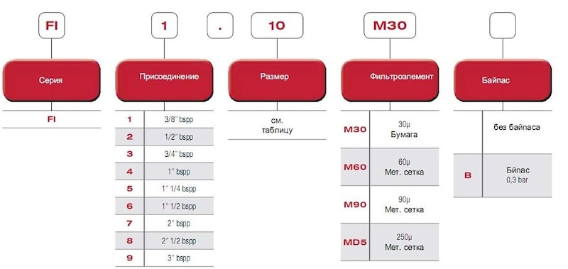 Кроме того у фильтров серии FI возможно 4 варианта тонкости фильтрации (30, 60, 90, 250 мкм), в серии FR -160 мкм, FRP - 125 мкм.
