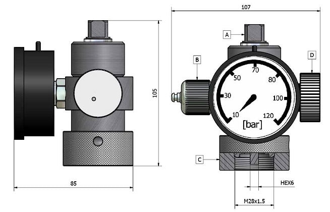 Устройство ARM28 это набор принадлежностей для контроля давления и зарядки азотом гидропневмоаккумуляторов. с азотным клапаном М28 (без переходника) и 5/8" UNF с переходникомТехнические характеристики: