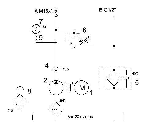 Гидростанция СГИ10.5,5/12-1,1-В3-211 5,5 л/мин, 100 бар