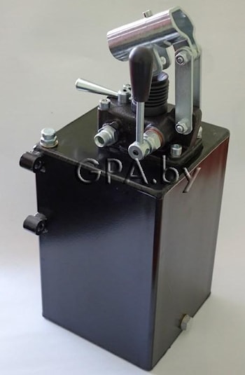 Насос ручной гидравлический двойного действия с предохранительным клапаном для применения с односторонними гидроцилиндрами. Для наружной установки. Можно монтировать отдельно от бака.