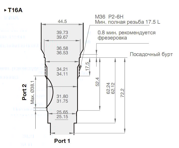 T16A посадочное гнездо ввертного клапана М36х2