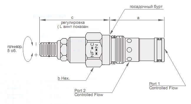 Ввертный регулируемый дроссель NFC 350 бар, до 200 л/мин