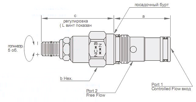 Ввертный регулируемый дроссель с обратным клапаном NC 350 бар, до 200 л/мин