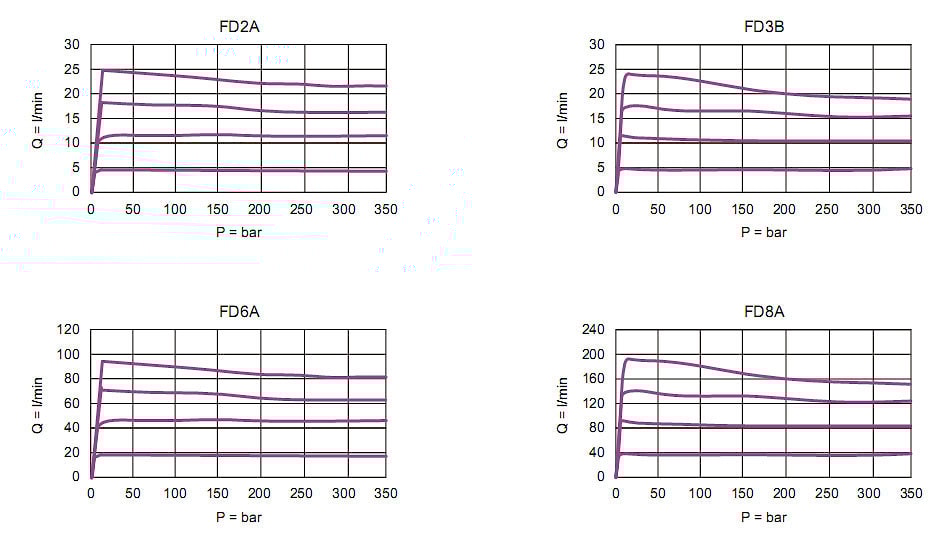 5 ► | диапазон регулировки | A | 2A : 0.4 ~ 23 l/min 3B : 0.4 ~ 45 l/min 6A : 1.0 ~ 95 l/min 8A : 1.0 ~ 200 l/min |