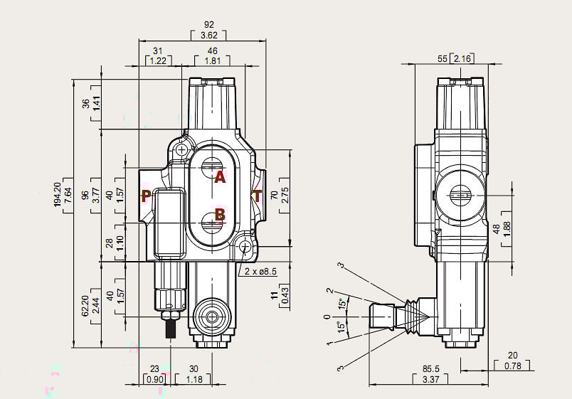 Моноблочный гидрораспределитель LB-2    45 л/мин, 250 бар