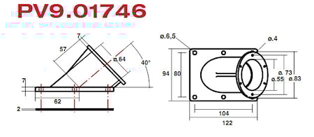 Угловой адаптер для крепления заливного фильтра на боковой стенке бака, для фланцевых фильтров с шестью крепежными отверстиями.