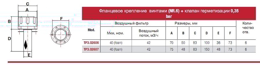 * TP7 - исполнение с компрессионным клапаном 0,35 бар.