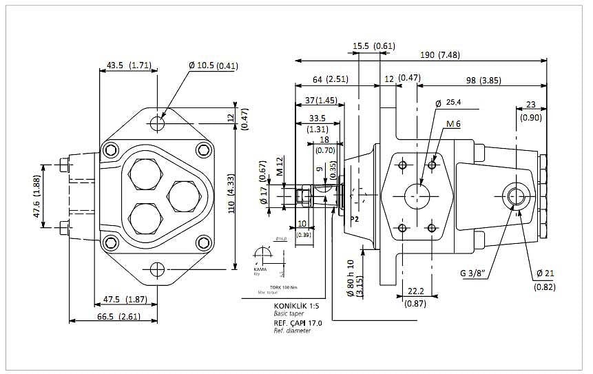 Теоретическая подача при 1000 rpm 10,5 л/мин Теоретическая подача при 1500 rpm 15,75 л/мин Максимальные обороты длительно 2800 rpm Максимальные обороты 3000 rpm Максимальныое давление длительно 400 bar Максимальное давление пиковое 450 bar Масса без ...