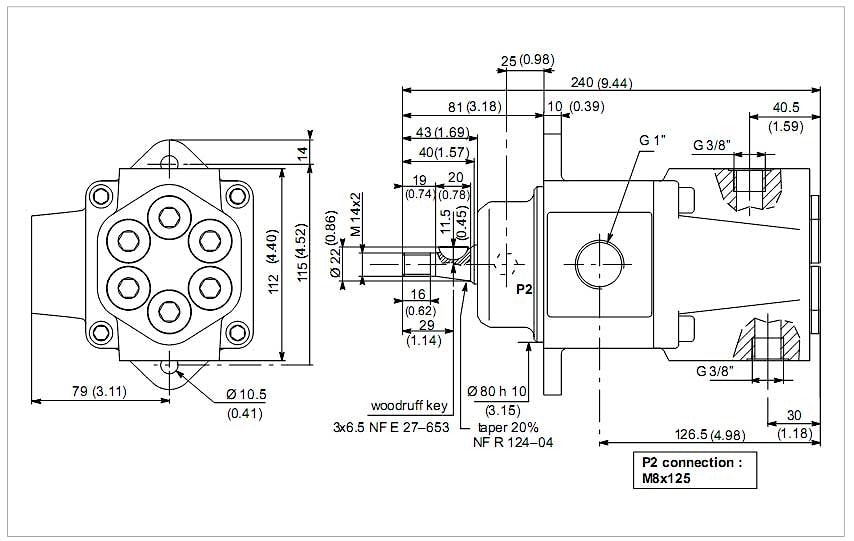 Теоретическая подача при 1000 rpm 23,7 л/мин Теоретическая подача при 1500 rpm 35,55 л/мин Максимальные обороты длительно 2500 rpm Максимальные обороты 2800 rpm Максимальныое давление длительно 400 bar Максимальное давление пиковое 500 bar Масса без ...