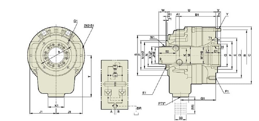 Высокоскоростные компактные вращающиеся гидроцилиндры со сквозным отверстием и блоком клапанов.Преимущества: