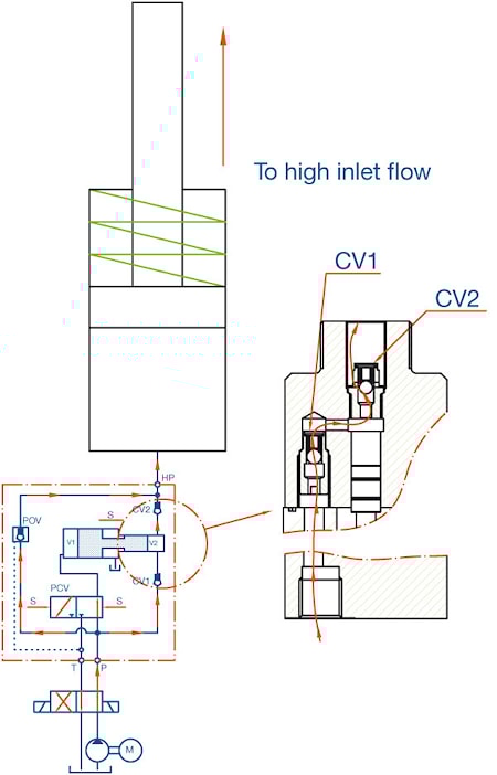 Кроме этого скорость движения поршня будет слишком высокой и может произойти кавитация. Чтобы избежать этих проблем поток P и T - должны контролироваться.