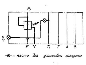 Р — напорная гидролиния» Р1 — гидролиния редуцированного давления; А и В — гидролинии, идущие к другим гидроустройствам (цилиндровые гидролинии); Т и Т1 — сливные гидролинии; Y и У, — сливные гидролинии управляющего потока