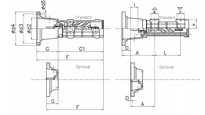 | Модель | A | B | C | D | F | G | G1 | H | I | L | d2 | d3 | d4 d6 | |